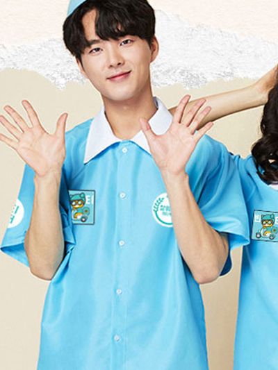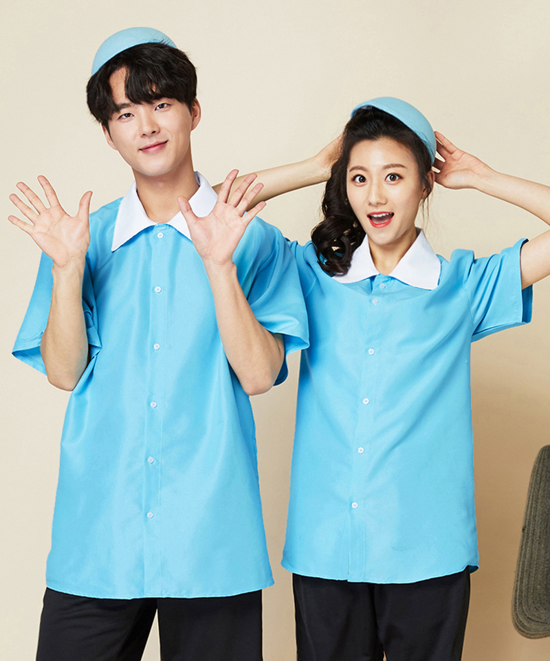 남방(하늘)반팔 (BT112-4) (왼가슴,오른가슴,오른소매 인쇄)