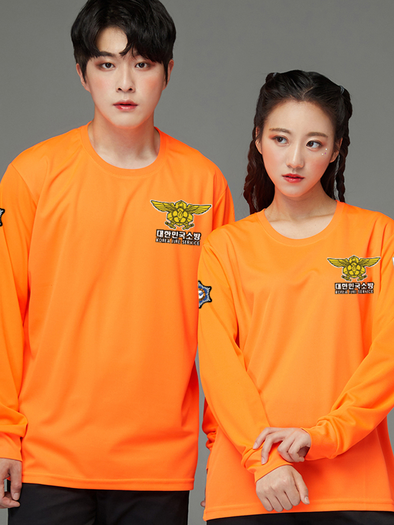 형광 주황 긴팔 (AT-127) (왼가슴,왼소매,오른소매,등전면 인쇄)