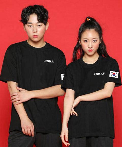 라운드 티셔츠 블랙 (왼가슴, 왼소매, 등 인쇄)