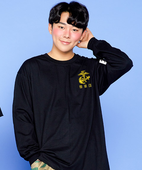 베이직 라운드 티셔츠 긴팔 블랙 (인쇄 포함)
