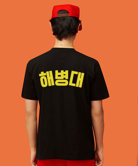 베이직 라운드 티셔츠 블랙 (왼가슴, 소매, 등해병대 인쇄)
