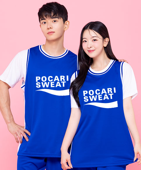 포카리 블루 농구 나시 반티 (옆면 흰선) (BT-1101)