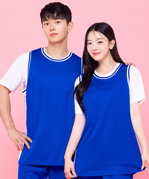 블루 농구나시 상의 (옆면흰선) (1101) (앞전면 포카리 인쇄)